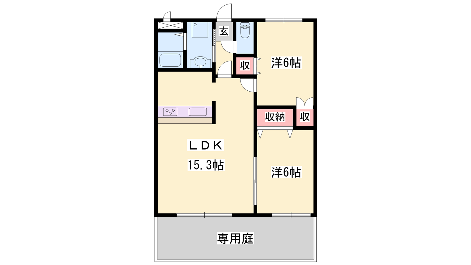- LDK15.3帖、洋室6帖、洋室6帖