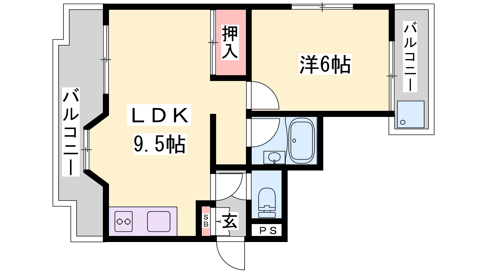 - LDK9.5帖、洋室6帖