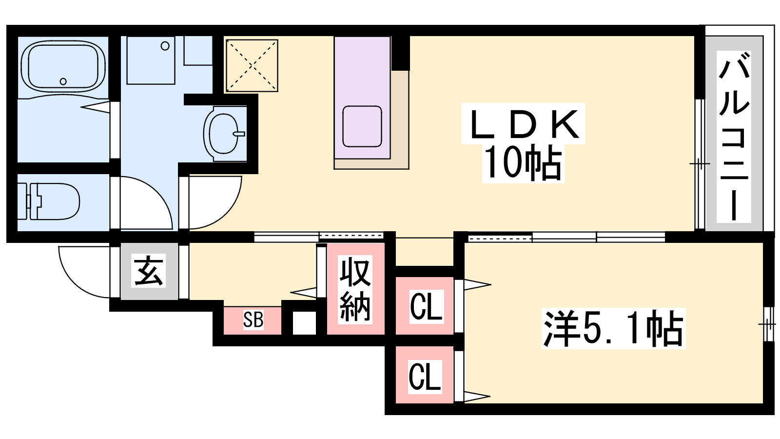 - LDK10帖、洋室5.1帖