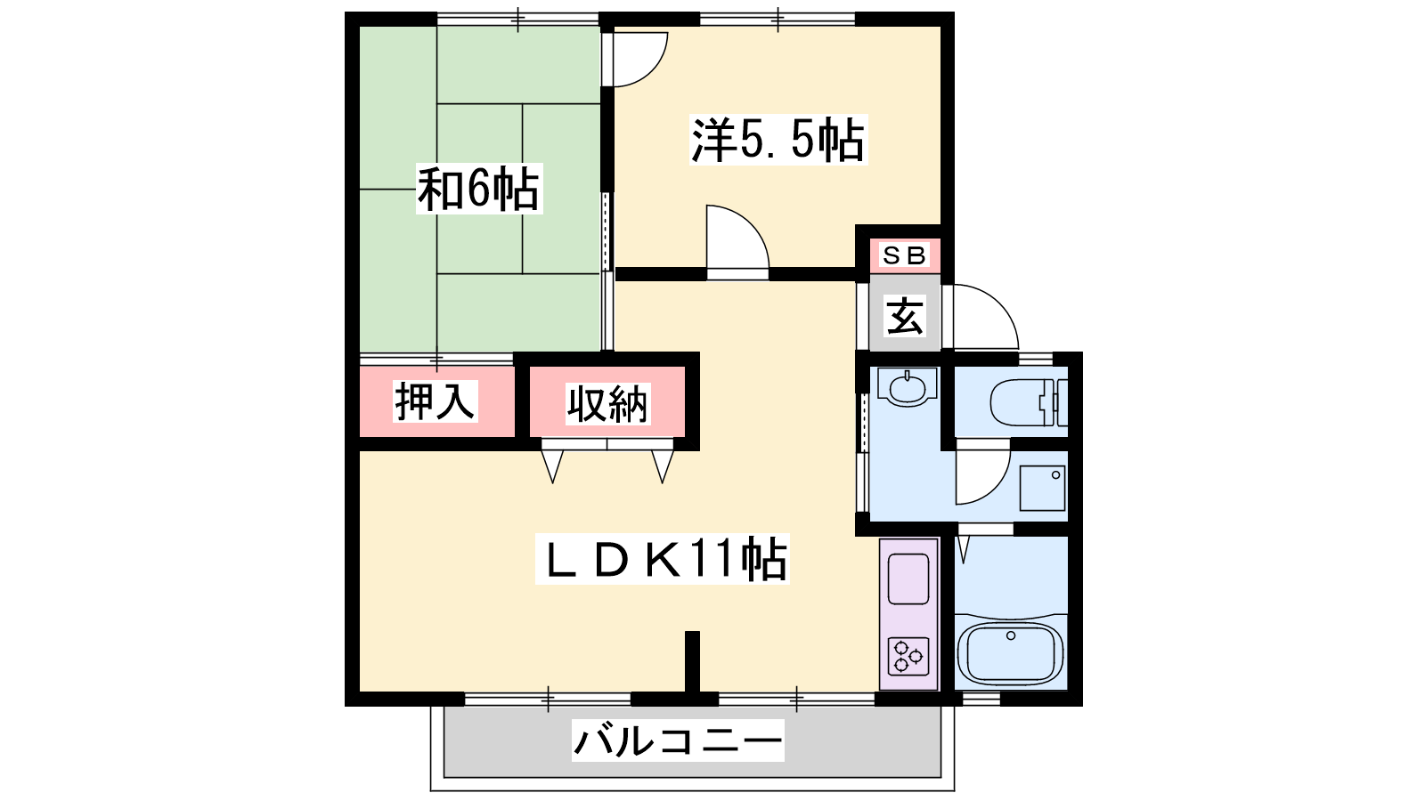 - LDK11帖、洋室5.5帖、和室6帖
