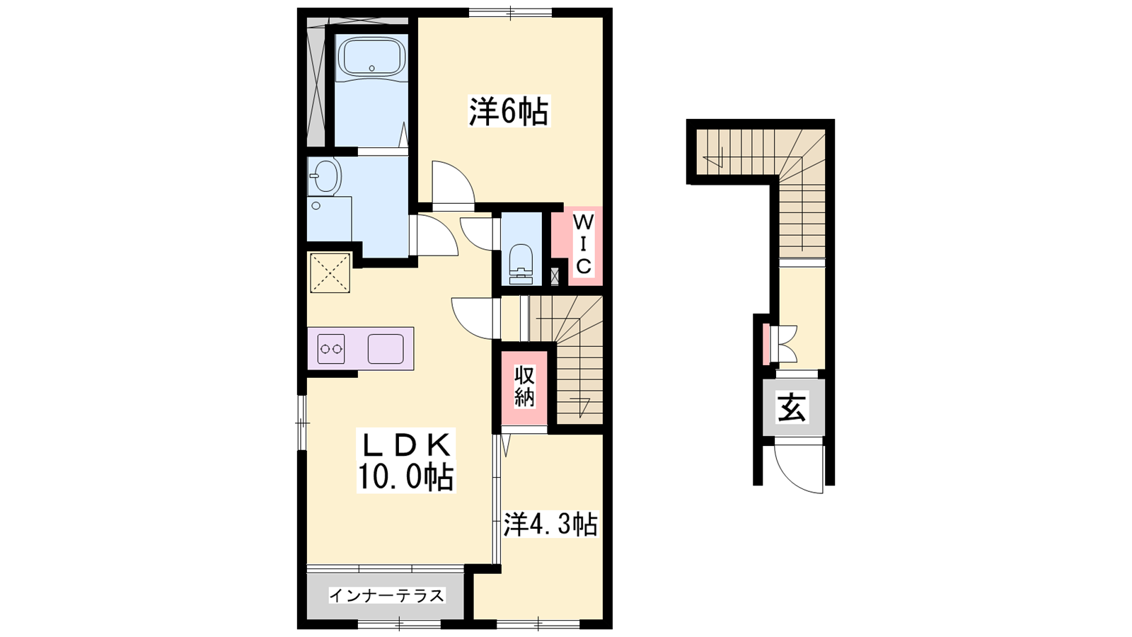 - LDK10帖、洋室6帖、洋室4.3帖