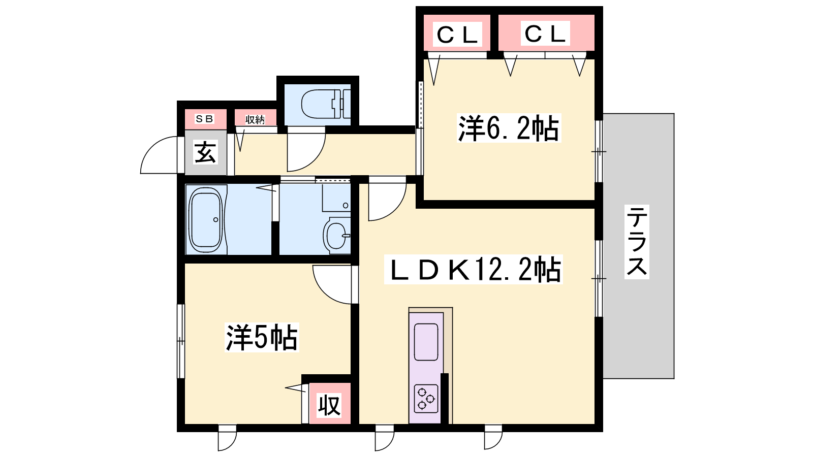 - LDK12.2帖、洋室6.2帖、洋室5帖