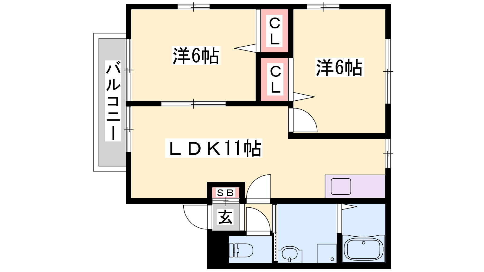 - LDK11帖、洋室6帖、洋室6帖