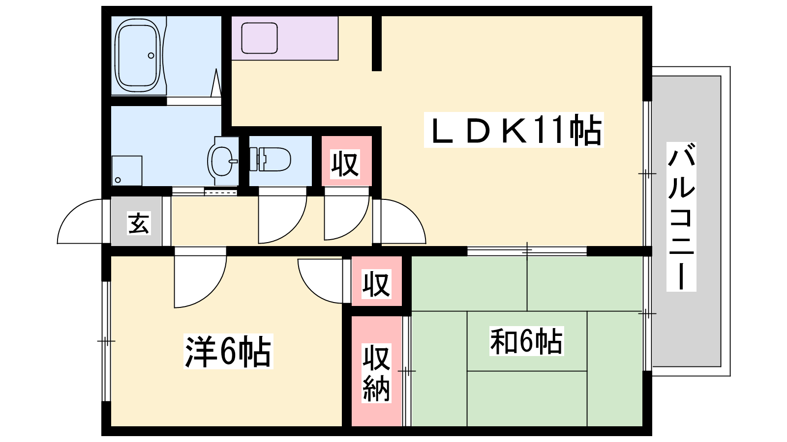 - LDK11帖、洋室6帖、和室6帖