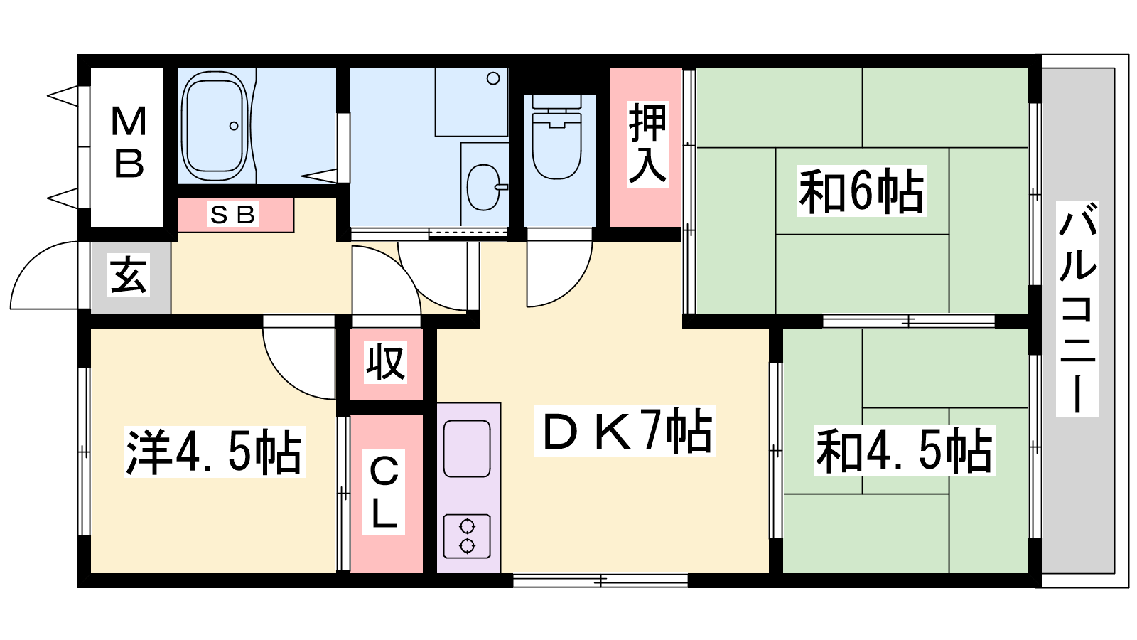 - DK7帖、和室6帖、和室4.5帖、洋室4.5帖