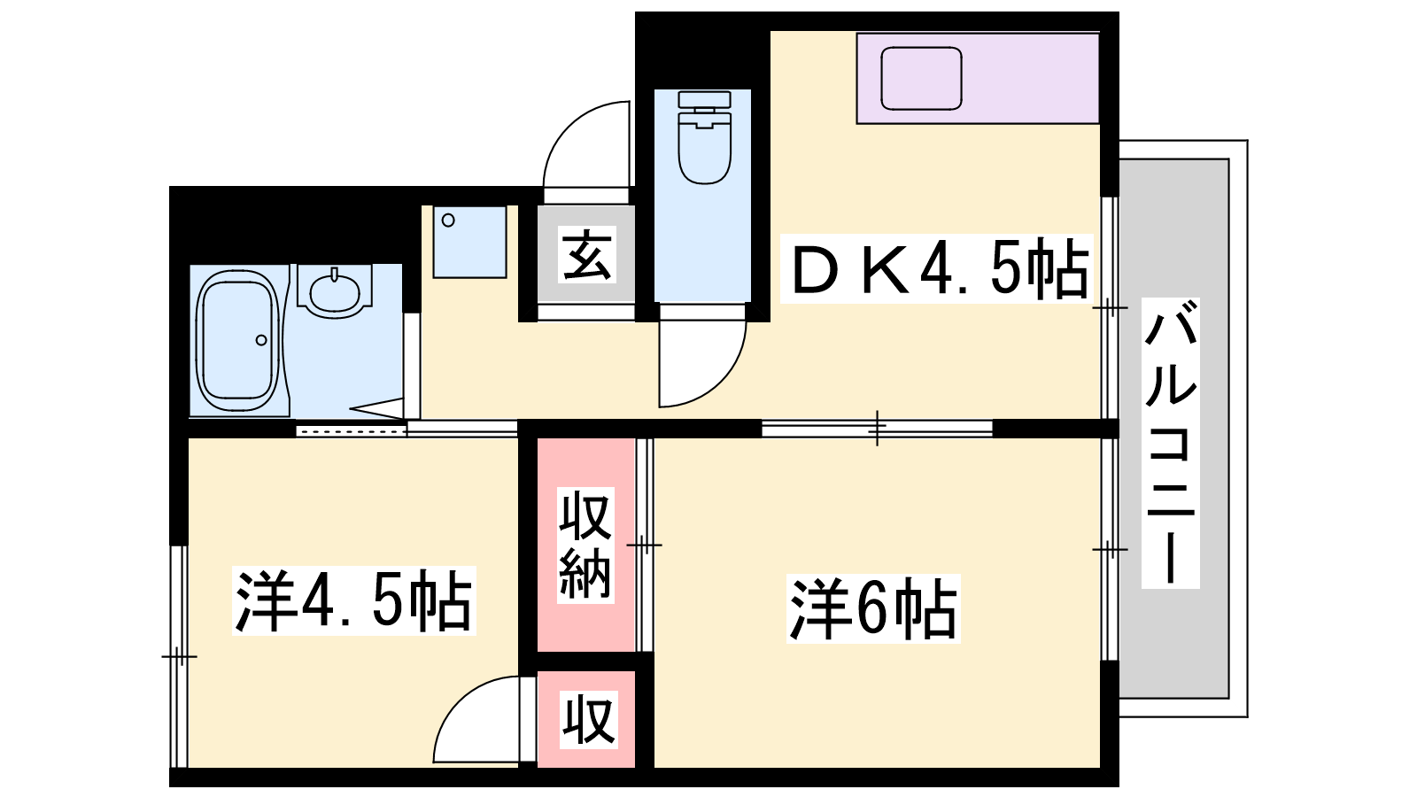 - DK4.5帖、洋室6帖、洋室4.5帖