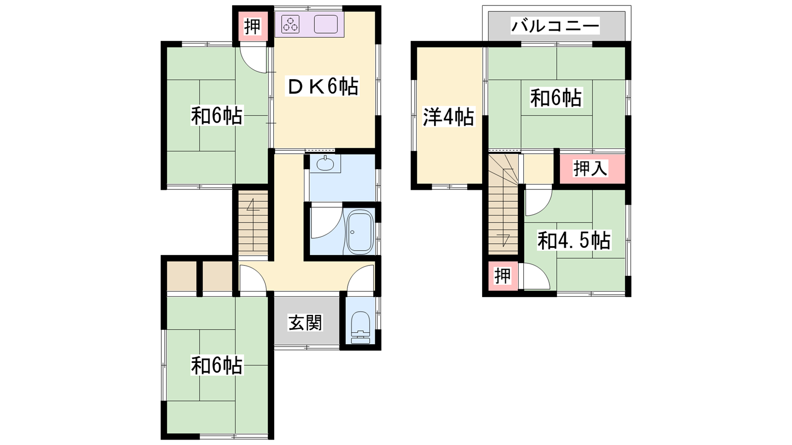 - DK6帖、洋室4帖、和室6帖、和室6帖、和室6帖、和室4.5帖
