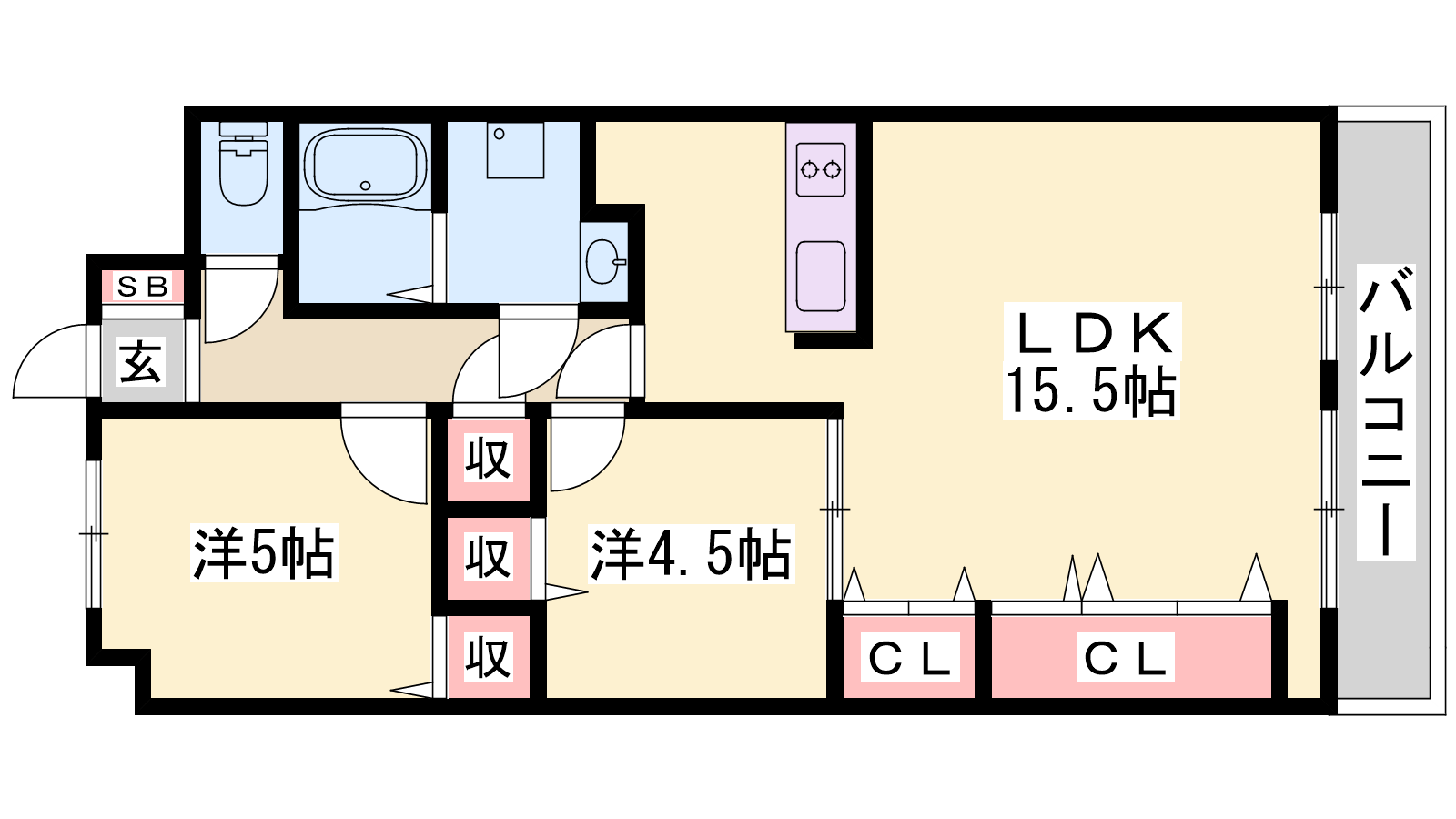 - LDK15.5帖、洋室4.5帖、和室5帖