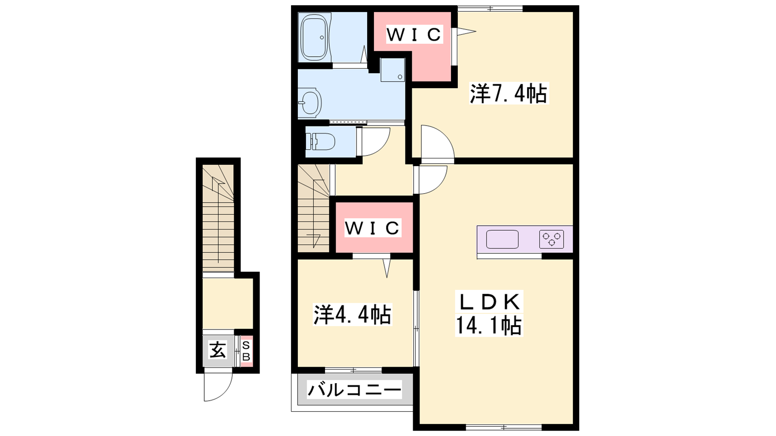 - LDK14.1帖、洋室7.4帖、洋室4.4帖