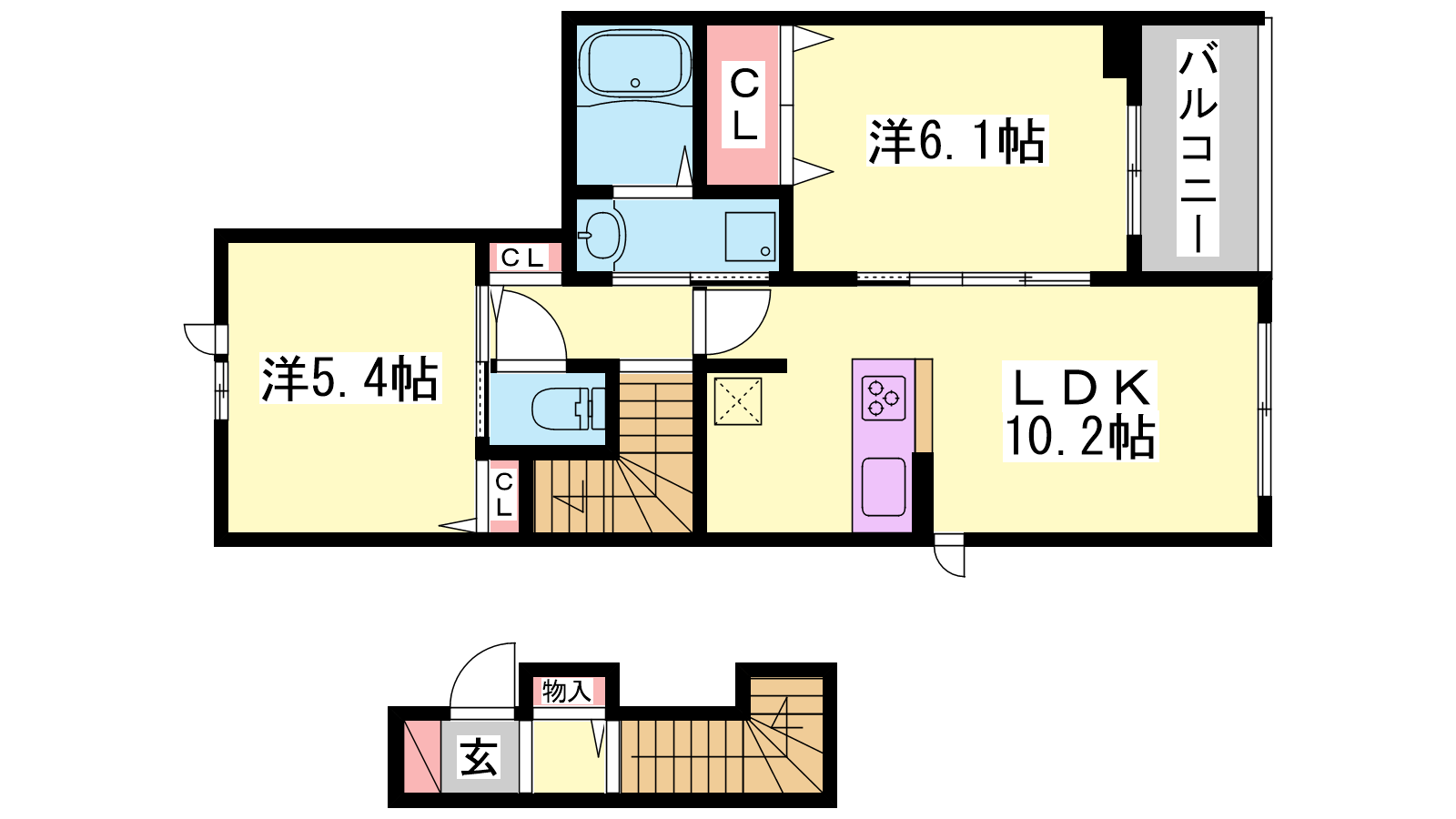 - LDK10.2帖、洋室6.1帖、洋室5.4帖