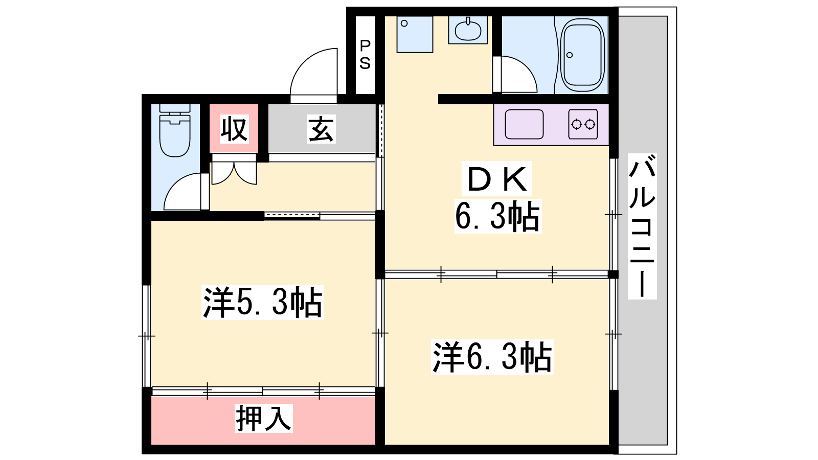 - DK6.3帖、洋室6.3帖、洋室5.3帖