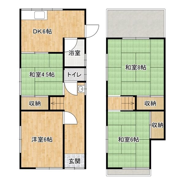 - DK6帖、和室8帖、洋室6帖、和室6帖、和室4.5帖