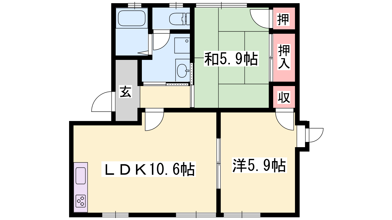 - LDK10.6帖、洋室5.9帖、和室5.9帖