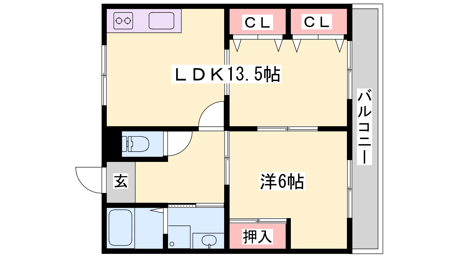 - LDK13.5帖、洋室6帖