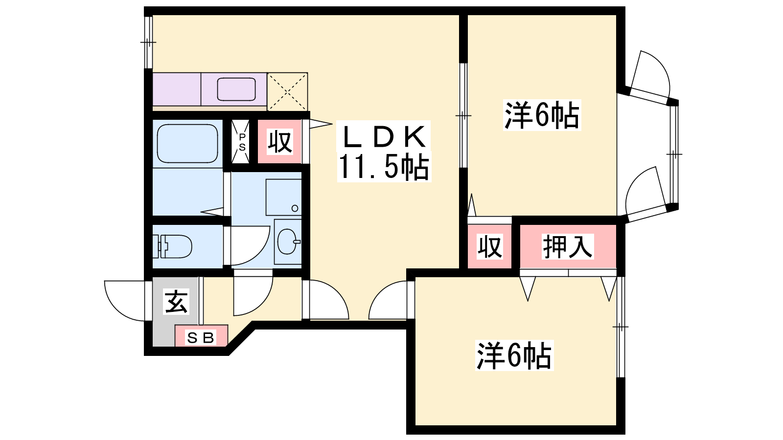 - LDK11.5帖、洋室7帖、洋室6帖