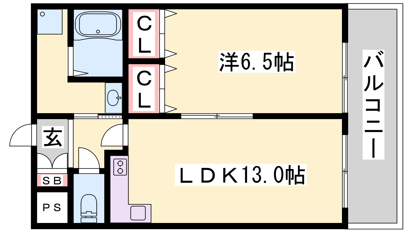 - LDK13帖、洋室6.5帖