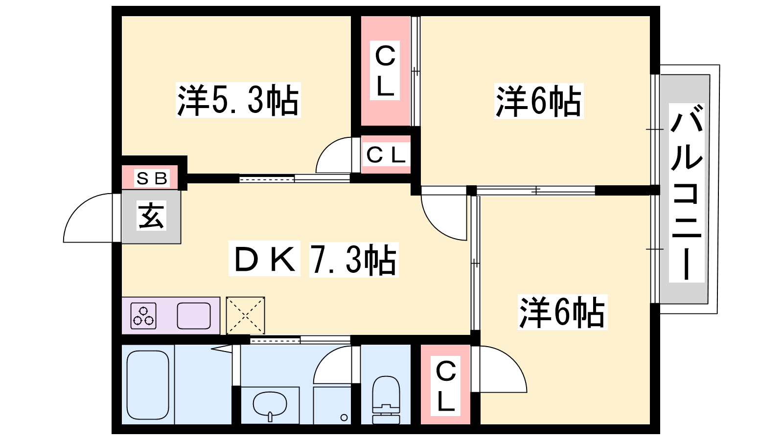 - DK7.3帖、洋室6帖、洋室5.3帖、洋室6帖