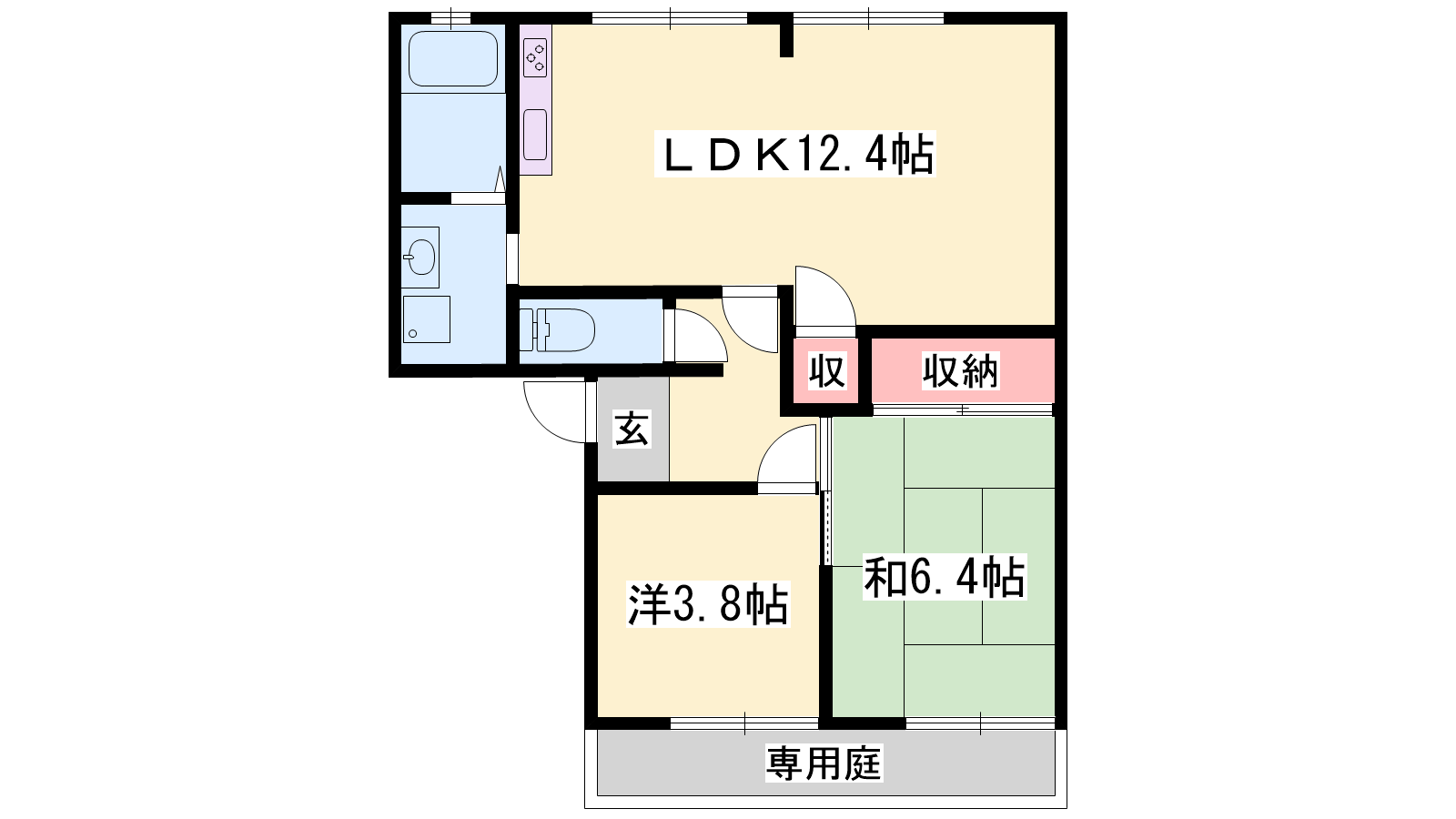 - LDK12.4帖、和室6.4帖、洋室3.8帖