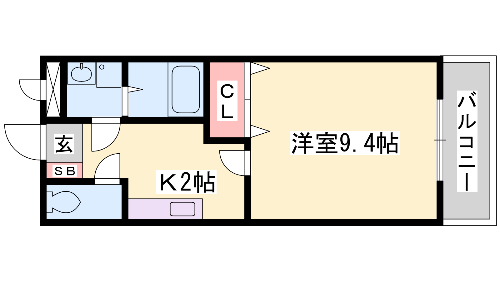 - K2帖、洋室9.3帖