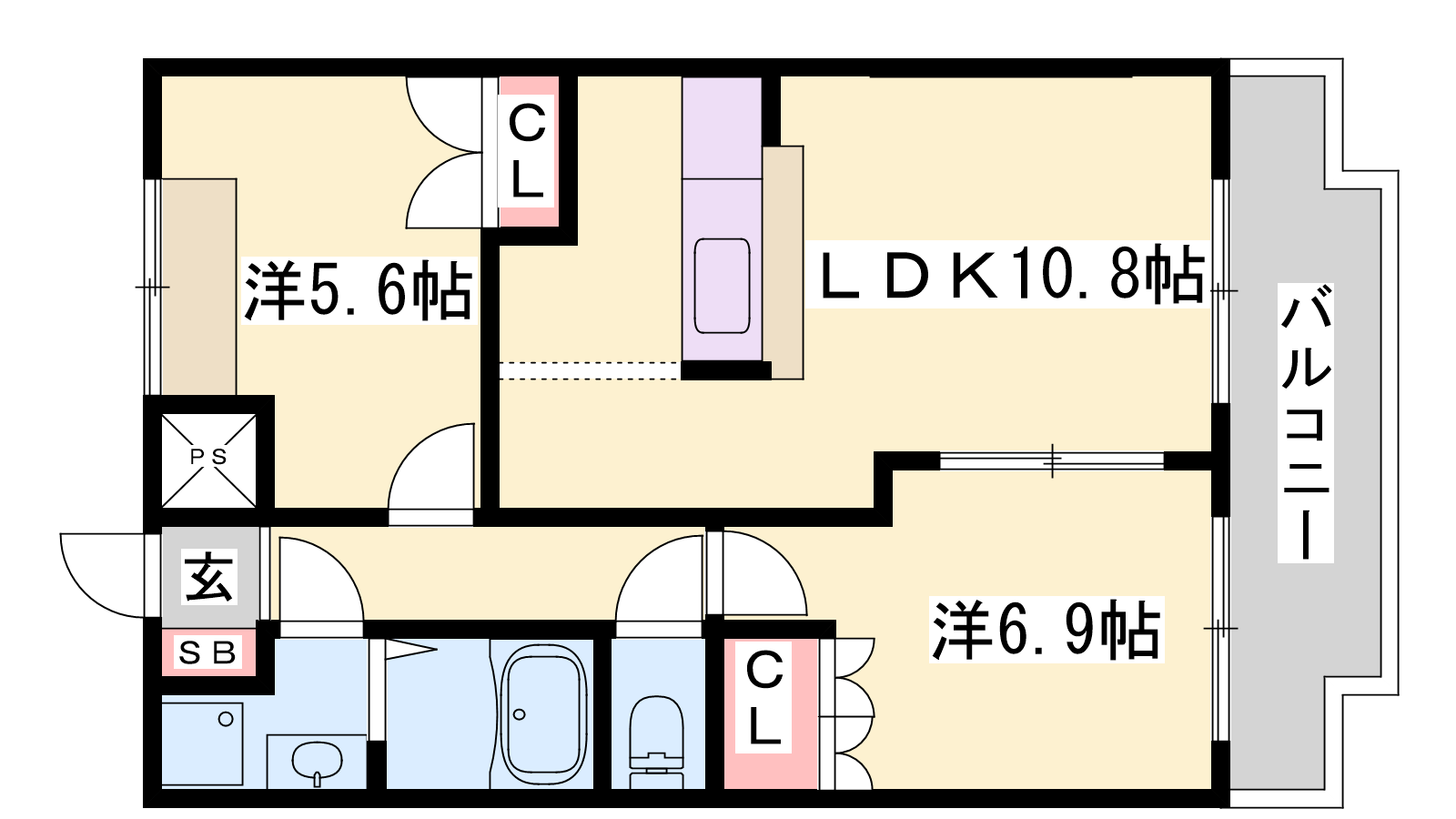 - LDK10.8帖、洋室6.9帖、洋室5.6帖