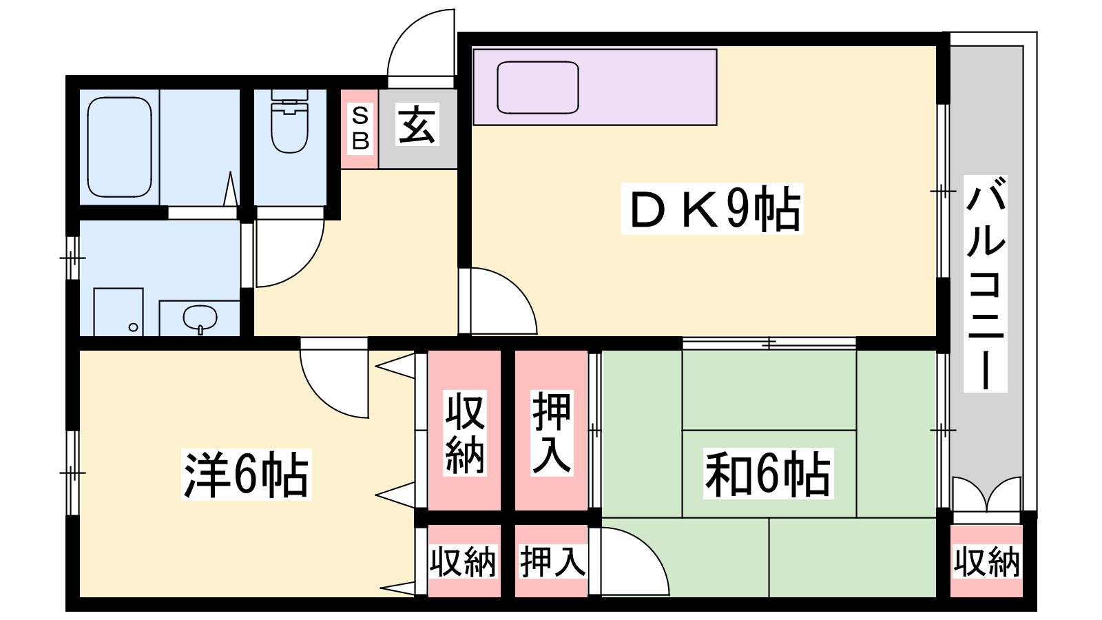- DK9帖、洋室6帖、和室6帖