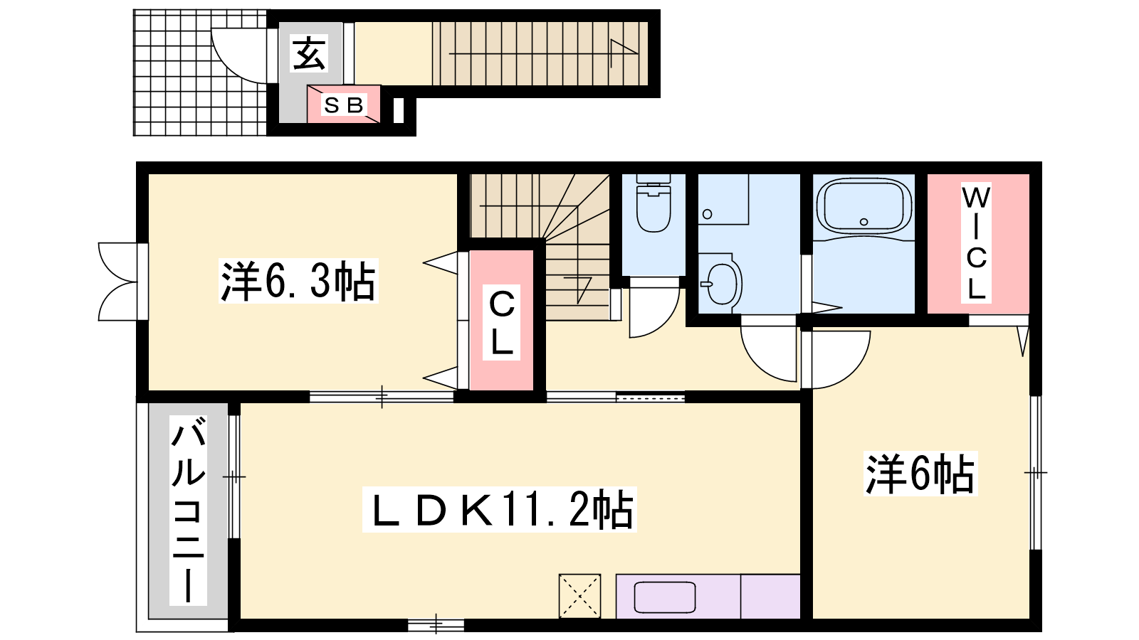 - LDK11.2帖、洋室6.3帖、洋室6帖