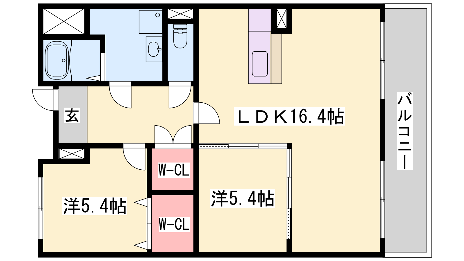 - LDK16.4帖、洋室5.4帖、洋室5.4帖