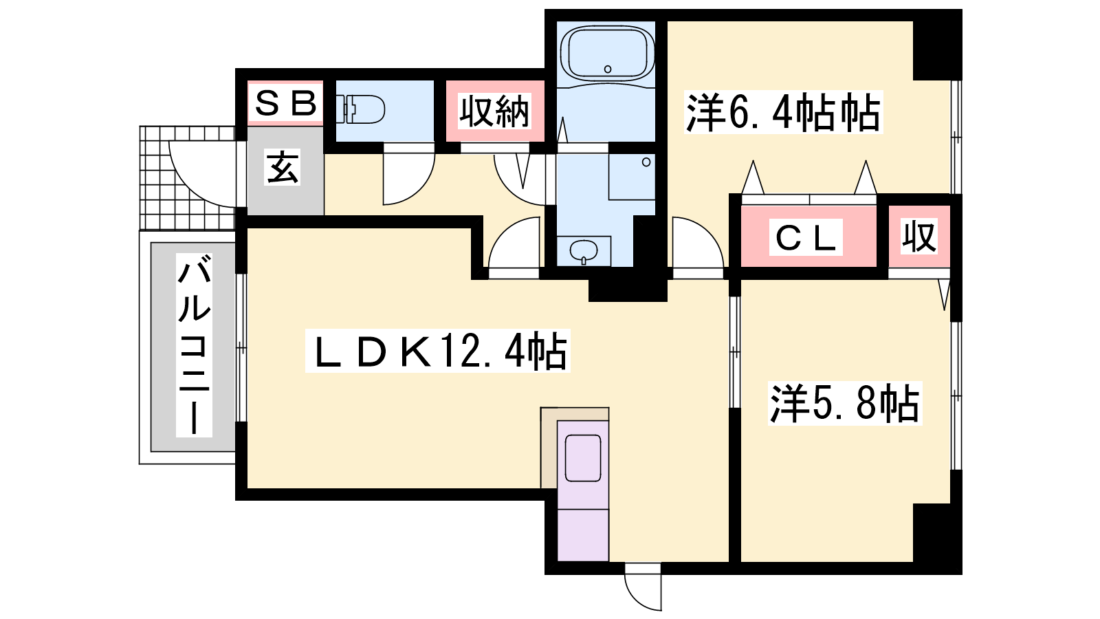 - LDK12.4帖、洋室6.4帖、洋室5.8帖