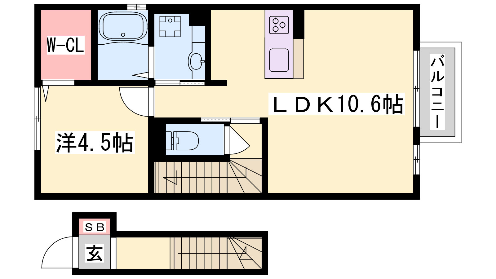- LDK10.6帖、洋室4.5帖