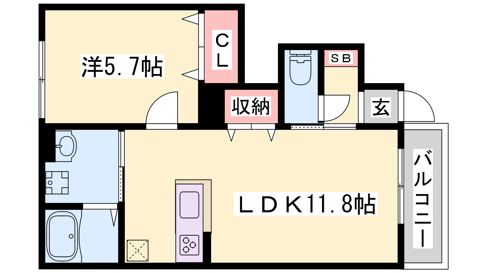 - LDK11.8帖、洋室5.7帖