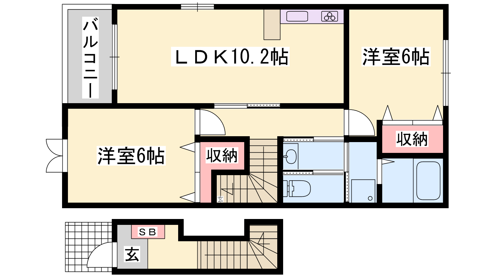 - LDK10.2帖、洋室6帖、洋室6帖