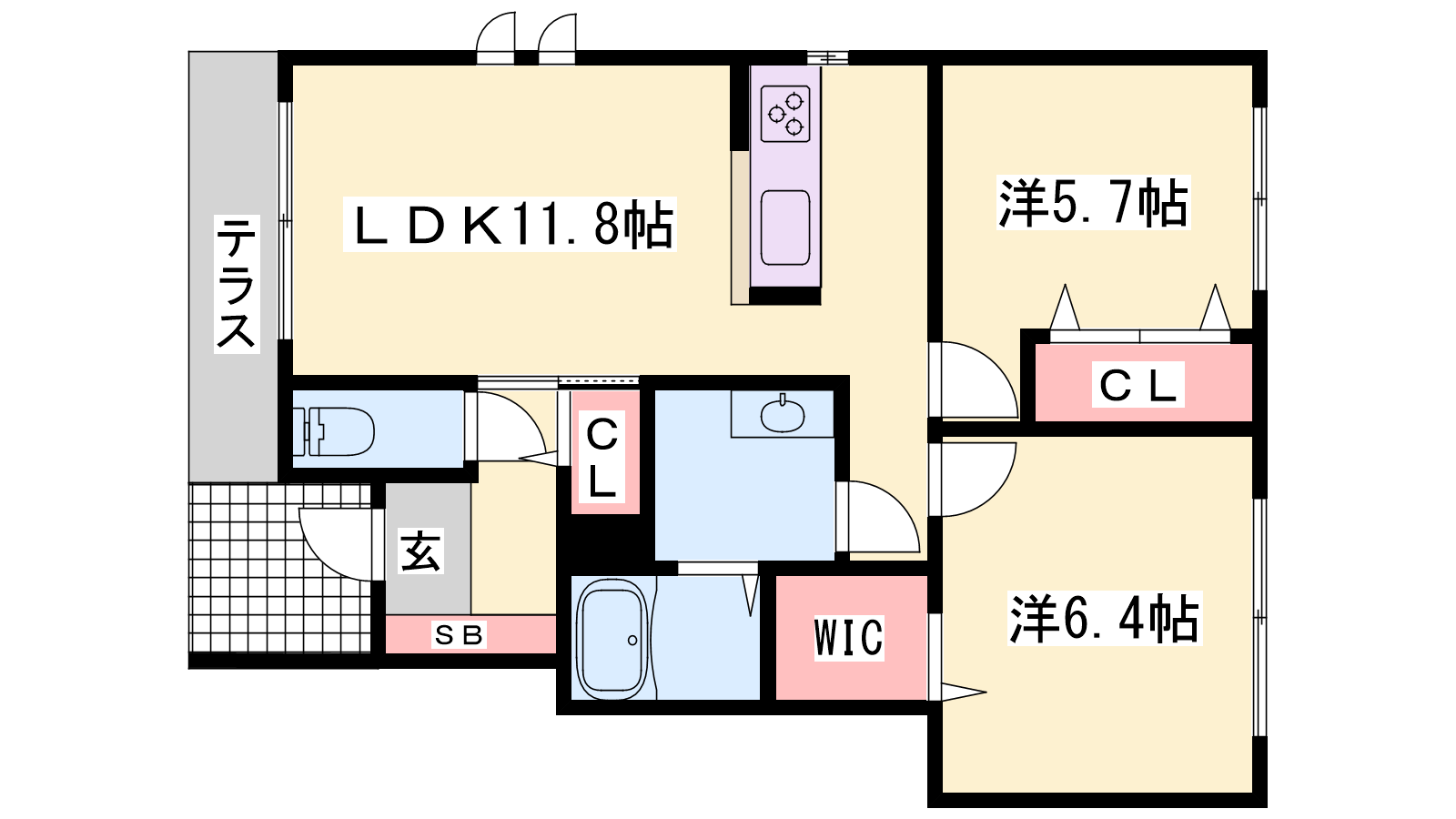 - LDK11.8帖、洋室6.4帖、洋室5.7帖