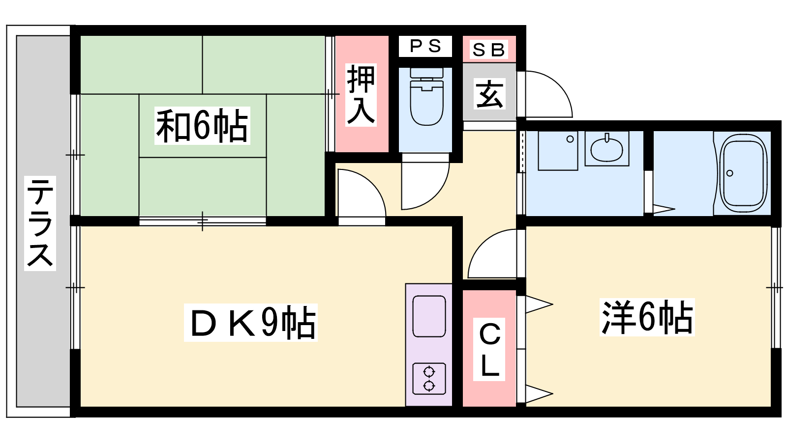 - DK9帖、洋室6帖、和室6帖