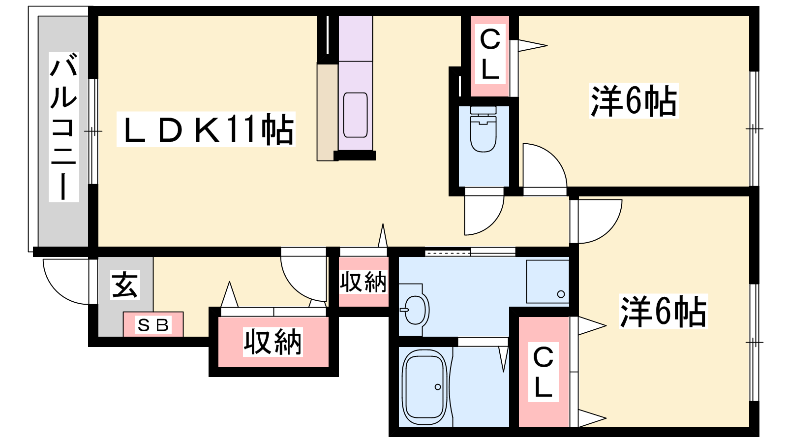 - LDK11帖、洋室6帖、洋室5.9帖