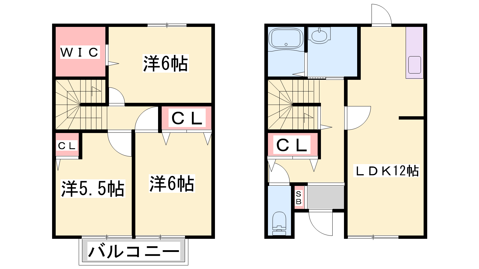 - LDK12帖、洋室6帖、洋室6帖、洋室5.5帖