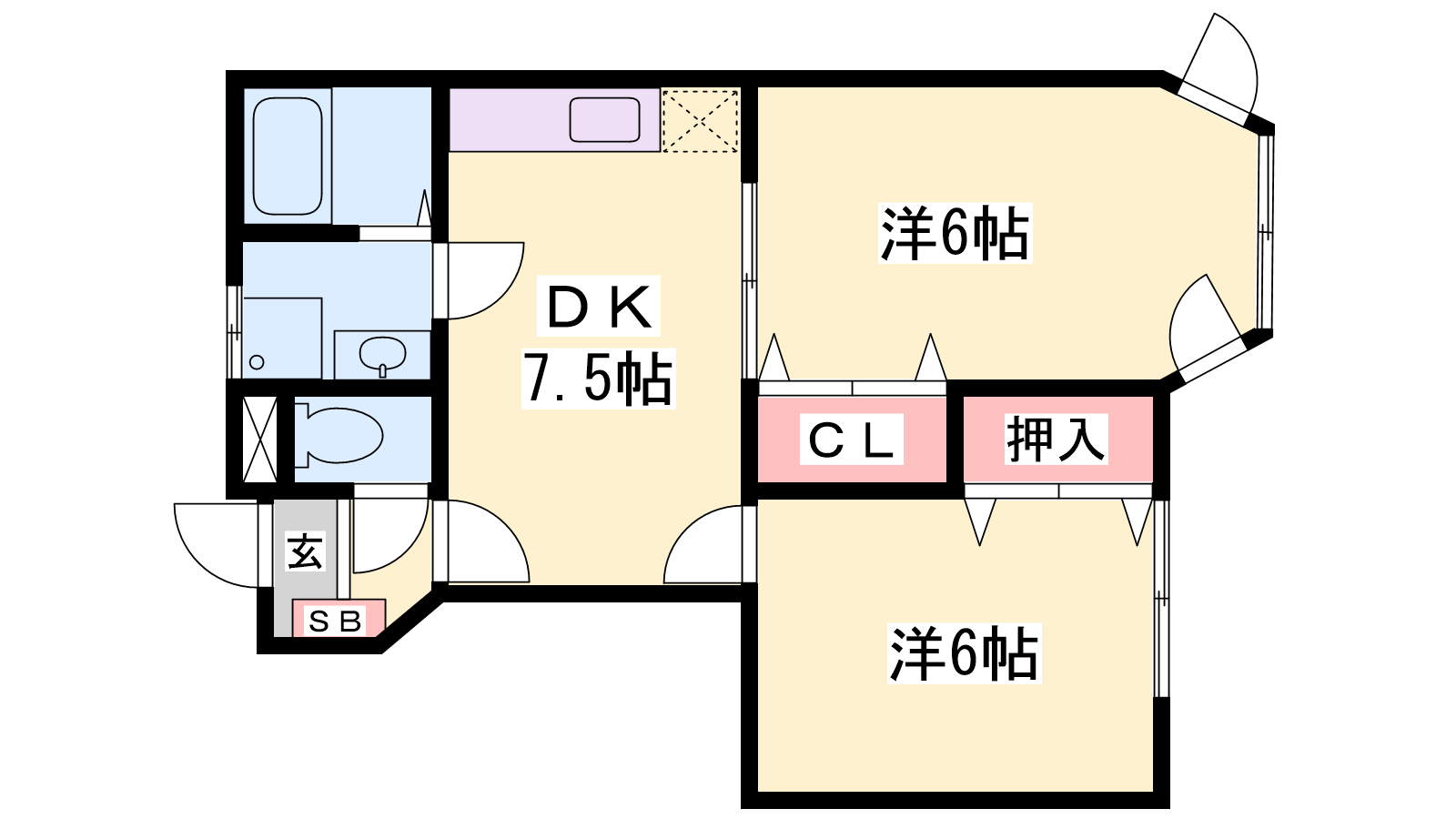 - DK7.5帖、洋室7帖、洋室6帖