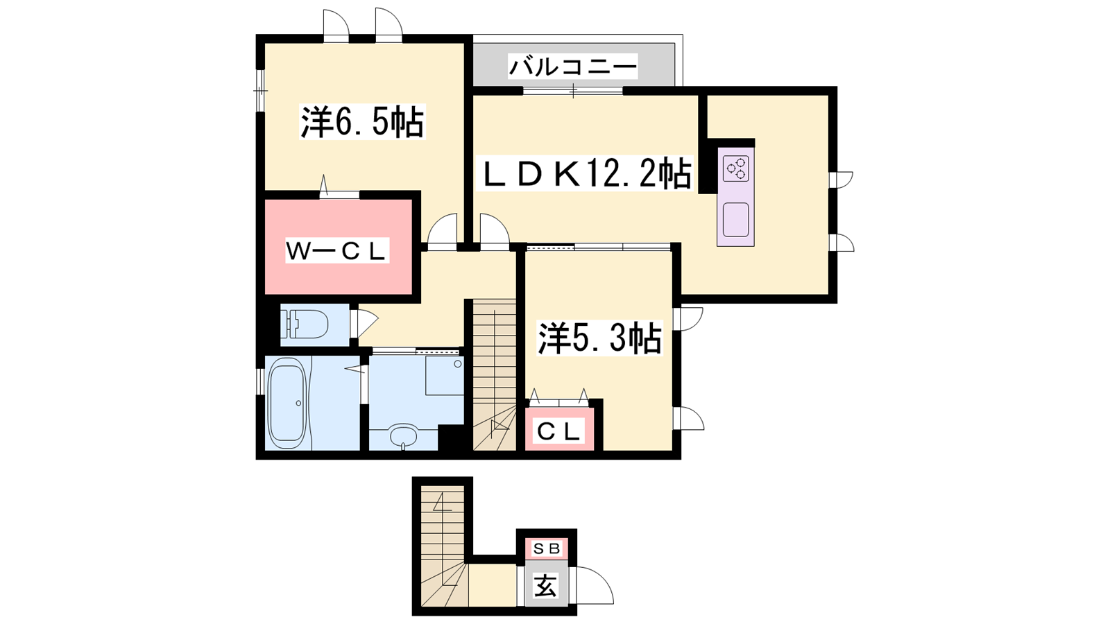 - LDK12.2帖、洋室6.6帖、洋室5.3帖