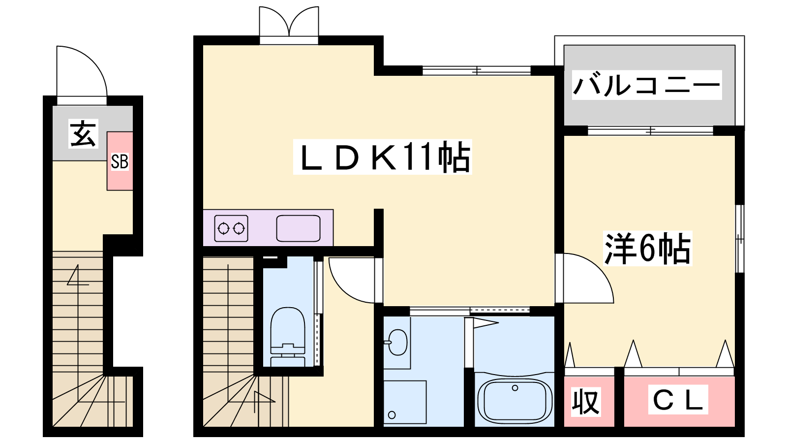 - LDK11帖、洋室6帖