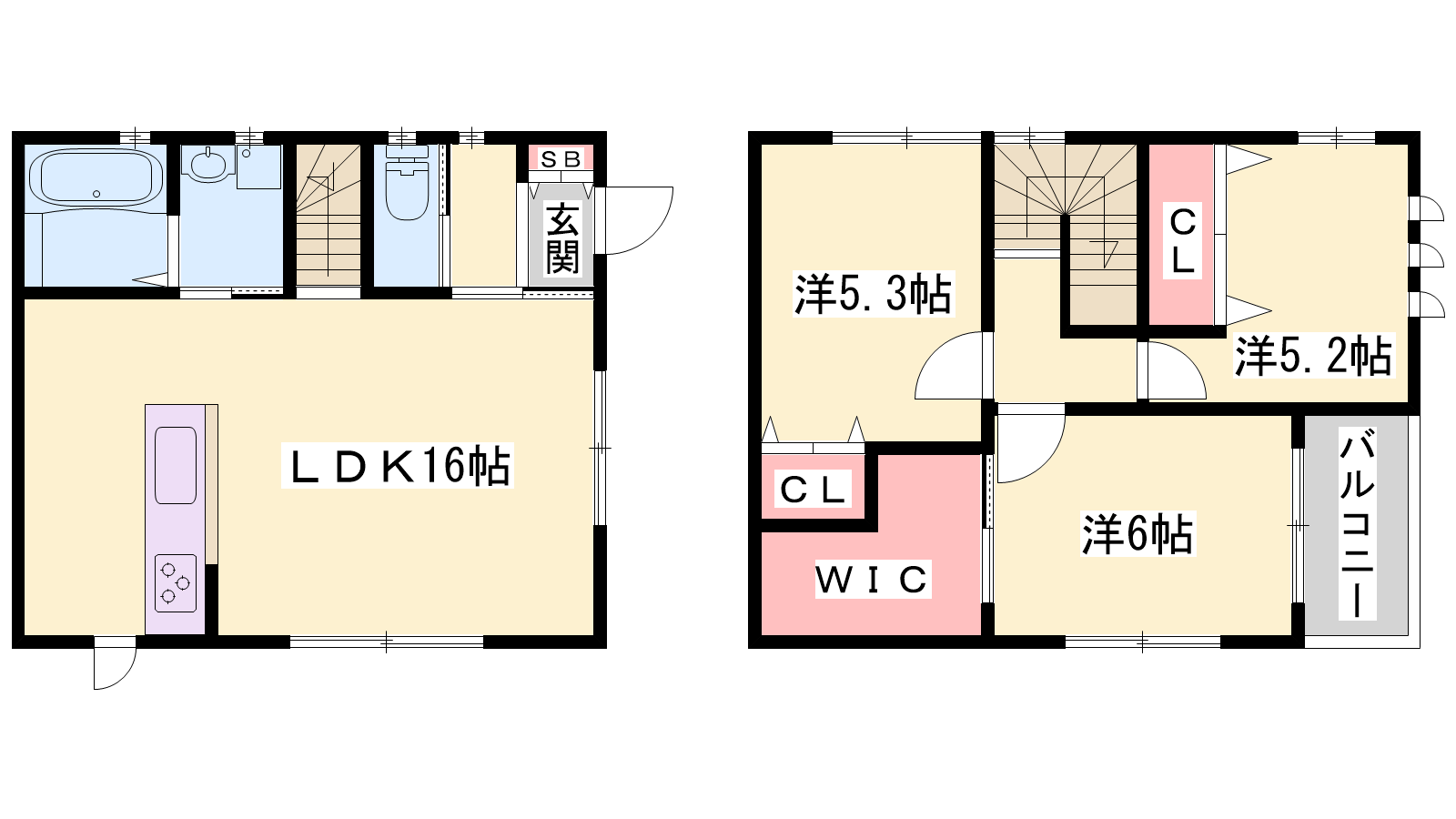 - LDK16帖、洋室6帖、洋室5.3帖、洋室5.2帖