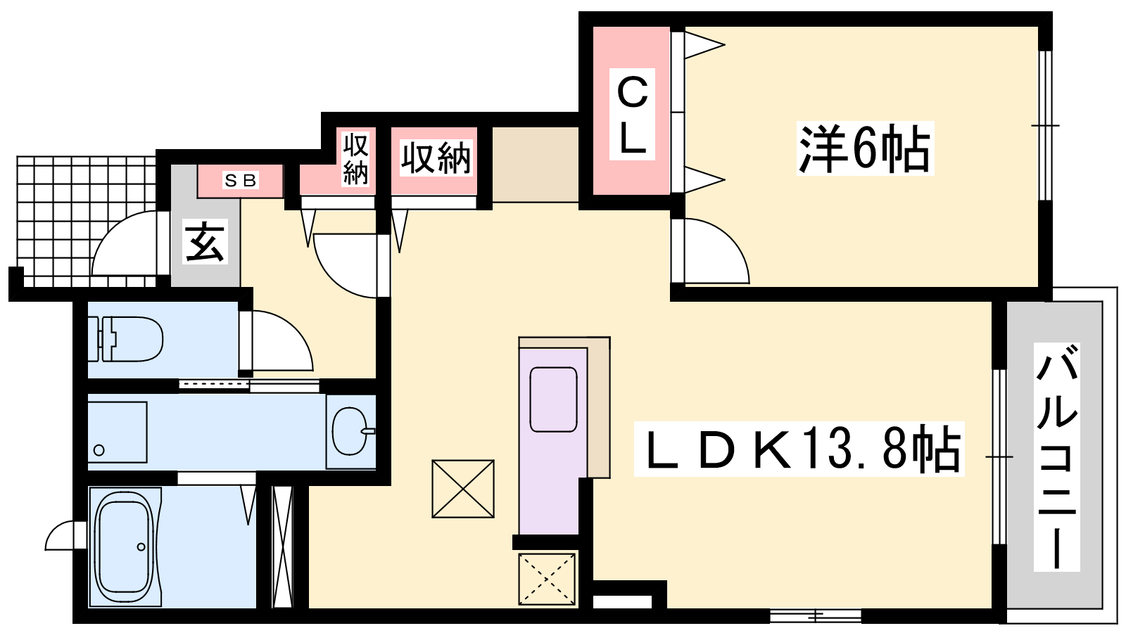 - LDK13.8帖、洋室6帖