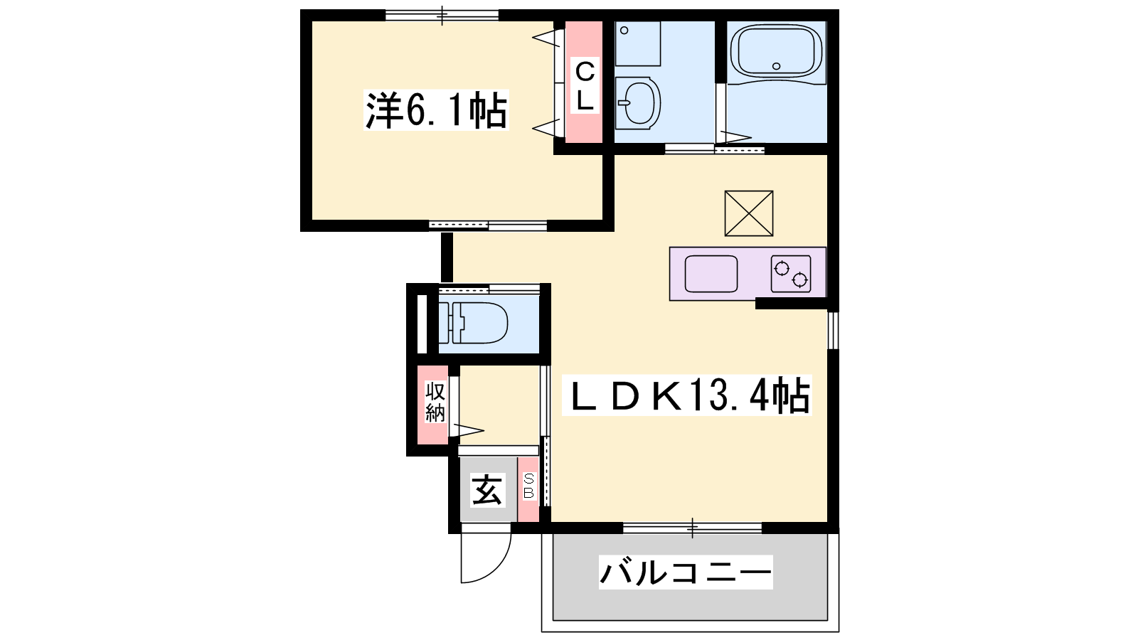 - LDK13.4帖、洋室6.1帖