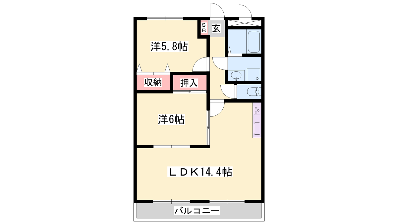 - LDK14.4帖、洋室6帖、洋室5.8帖