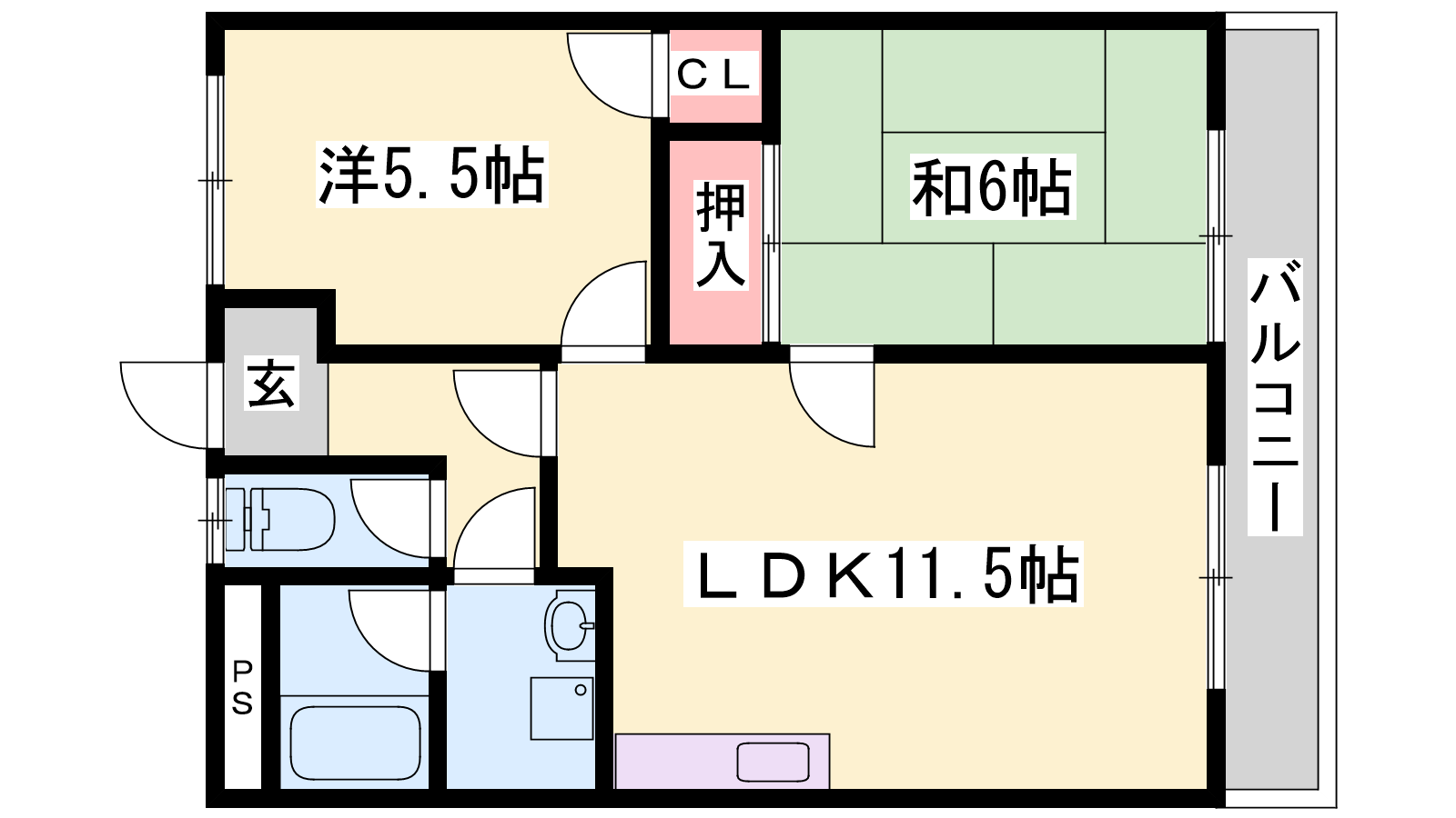 - LDK11.5帖、洋室5.5帖、和室6帖