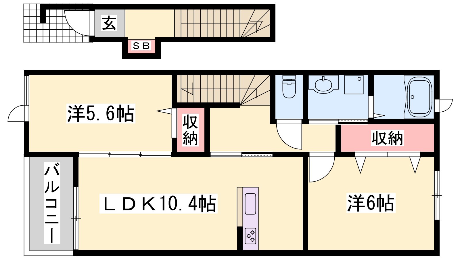- LDK10.4帖、洋室6帖、洋室5.6帖