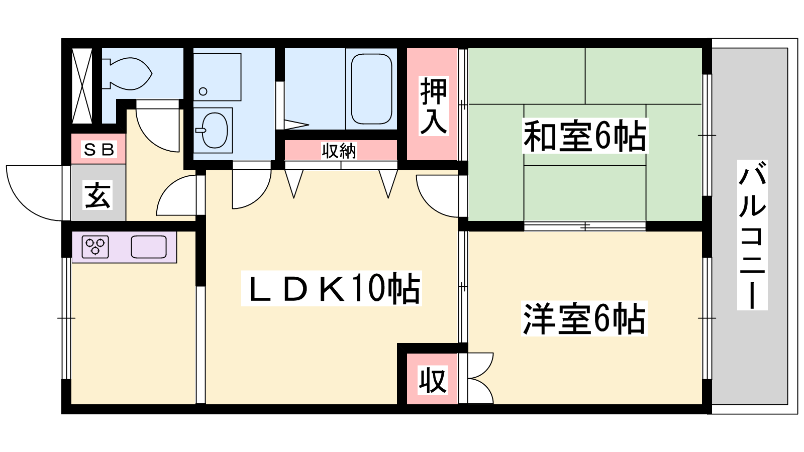 - LDK10帖、洋室6帖、和室6帖