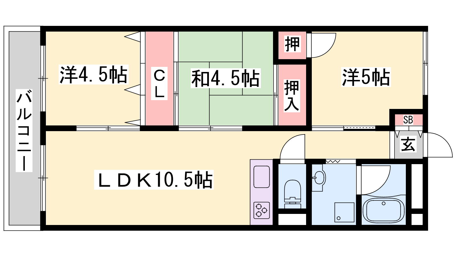 - LDK10.5帖、洋室5帖、洋室4.5帖、和室4.5帖