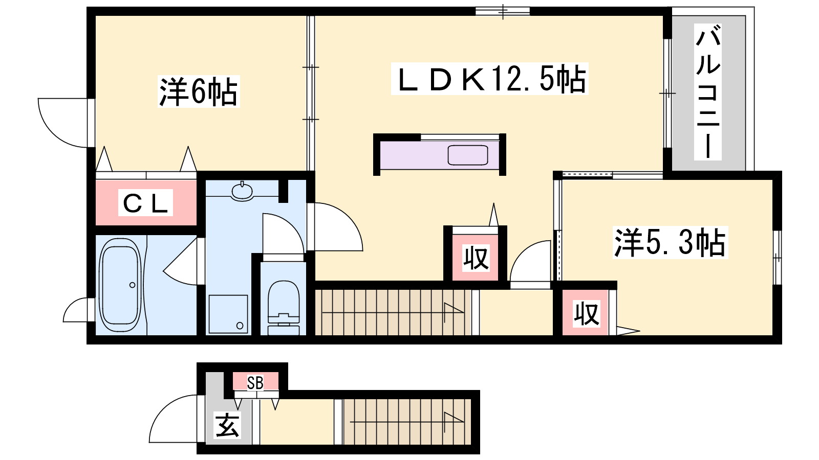 - LDK12.5帖、洋室6帖、洋室5.3帖
