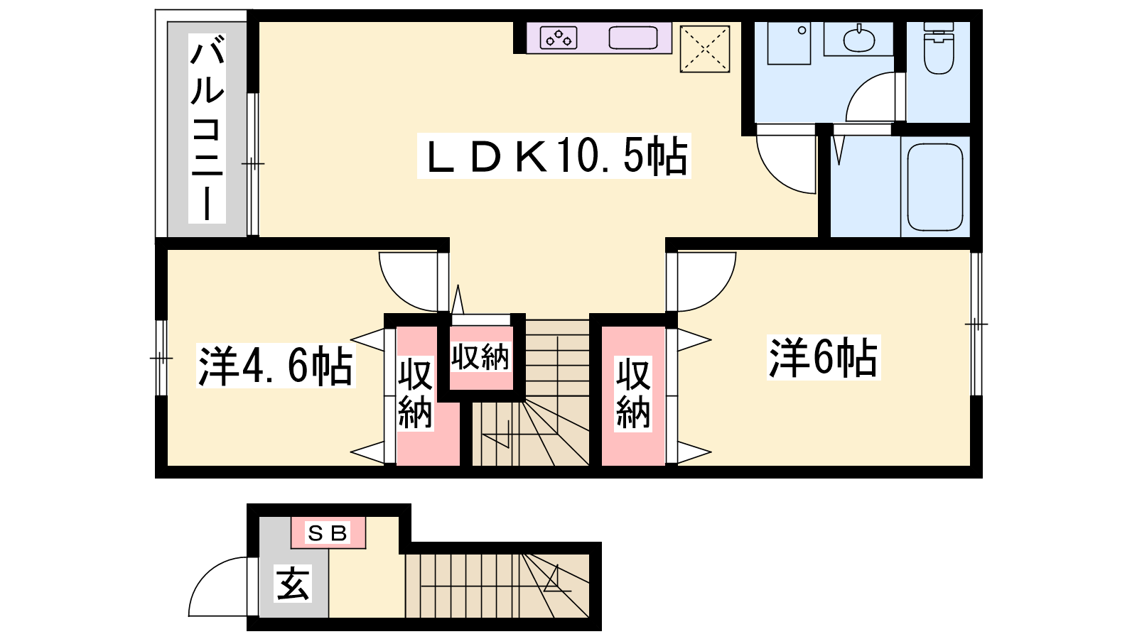 - LDK10.5帖、洋室6帖、洋室4.6帖