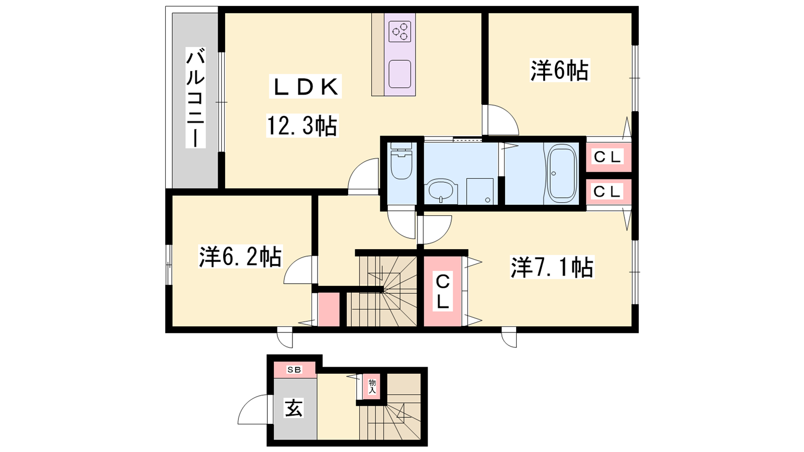 - LDK12.3帖、洋室7.2帖、洋室6帖、洋室6.2帖
