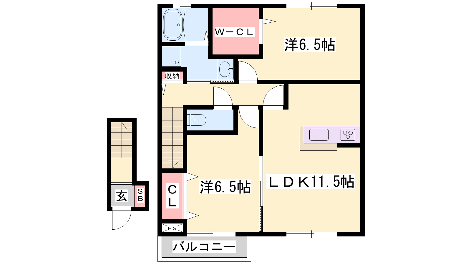 - LDK11.5帖、和室6.5帖、和室6.5帖